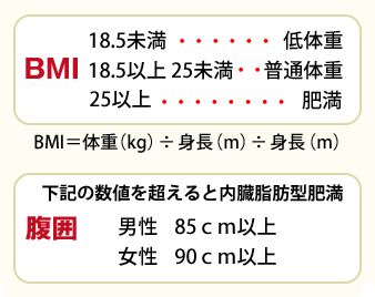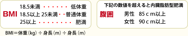 - ●肥満を防ぎ体重と腹囲を正常値に保つ