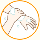冷房中は、関節部の保温に気をつけましょう。夏でも薄手の長袖・長ズボン・ブランケットなどで保温します。外出時には保温用サポーターや大判スカーフなどを利用します。- ●感染症予防対策