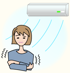 エアコンの風が患部に当たると関節痛が強くなるため、風向きを上に上げるなど調節して風が関節に当たらないように注意します。