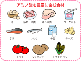 長時間の運動や激しい運動では、血液中のアミノ酸(BCAA)が少なくなり、この減少を感知して脳が疲労し、筋肉の活動を抑制させているといわれています。疲労回復に役立つアミノ酸を豊富に含む食材には、全卵、豚ロース肉、鶏ムネ肉、牛乳、ヨーグルト、チーズ、鮭、 イワシ、トマト、ジャガイモ、トウモロコシなどがあります。- クエン酸