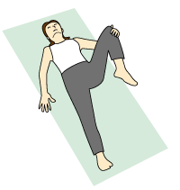 - 仰向けに寝て、息を吸いながら片膝を胸に引き寄せます。