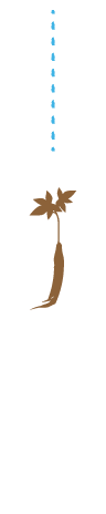 - 根は、肥大な形で脳頭・胴体・足・尾からなります。脳頭と主根・支根がバランス良く発育すると、人の形に似た形状になります。